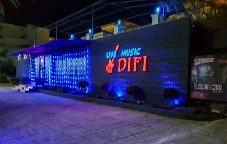 Difi Live Music canlı müzik mekanı olarak biliniyor. Burası denize yakın olduğu için içkinizi alıp deniz kenarında canlı müzik eşliğinde eğlenebileceğiniz bir mekan ve garsonları güzel ve hızlı bir şekilde istediklerinizi getiriyorlar. Gerçekten kaliteli bir arnavutluk gece hayatı mekanı